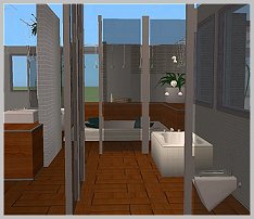 | The gift includes the following files: 15 new meshes: 1.Hottub in 3 colors 2.Cornertub in 2 Colors 3.Showertub in 2 Colors 4.Sink in 2 Colors 5.Table (Counter) in 3 Colors 6. + 7. Palm Plant (2 versions regarding polycount) - - you can use both in your game 8.Wallplant Hedera (cloned on a painting) 9.Deco (Towels)in 3 Colors 10.Mirror in 2 Colors 11.Small Fern Plant 12.Toilet in 2 Colors 13. Ceilinglamp 14. Roomdivider 15. Large Plant Ficus Benjamin + 10 Walls 1 Floor = black tiles* (the white tiles are already available in the floorsection page5) *the shiny floors on the Main page are not from in Game, they are made with my 3D Program and thus not included All items are tested in game with and without EP University and work fine, they are (no guarantee can be given for further Expansion Packs) |