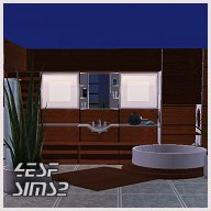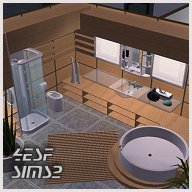 | The gift includes the following files: 15 new meshes: 1. Round Tub in 4 Colors (darkwood, cherry, walnut and plain white) 2. Coffeetable in 3 Colors 3. Top Wallunit in 3 Colors 4. Walldeco panels in 3 Colors 5. High Table in 3 Colors 6. Wood panel rug in 3 Colors 7. Plant 8. Deco Vases 9. Deco set 10. 2nd Plant 11. Sink 12. Shower 13. Toilet 14. Walllamp 15. Mirror 3 Walls (darkwood, cherry, walnut) 1 Floor (grey Tiles) Inluded is the mesh for the countertop (from Donationset 7) + new glass recolor All items are tested in game with and without EP University and work fine, they are (no guarantee can be given for further Expansion Packs) All pictures below are screenshots taken in game: |