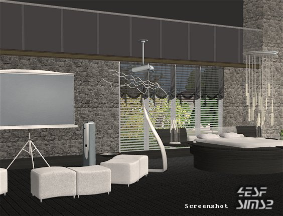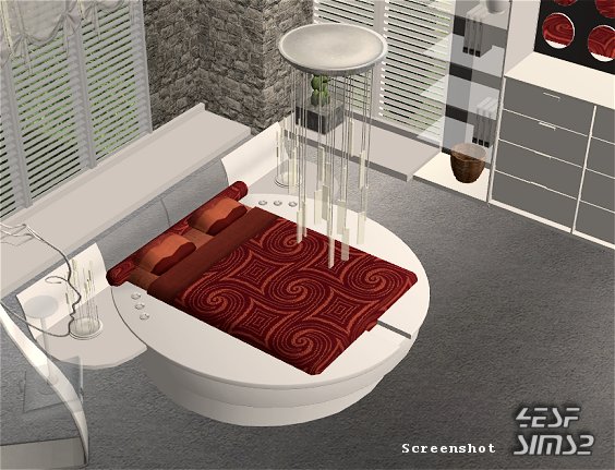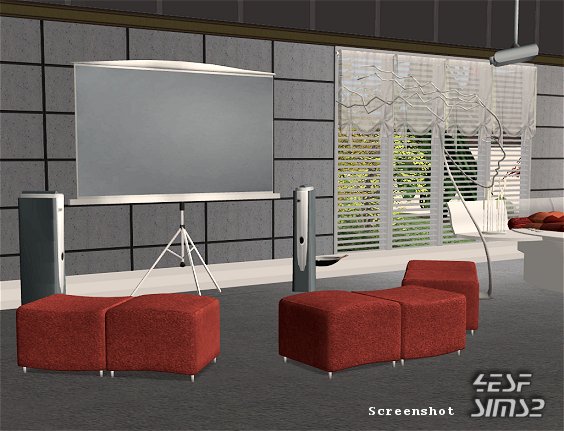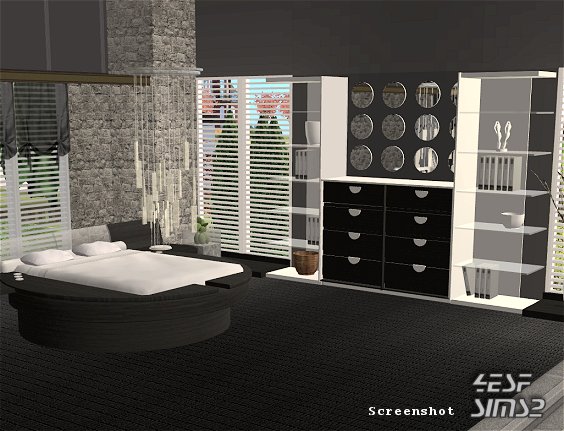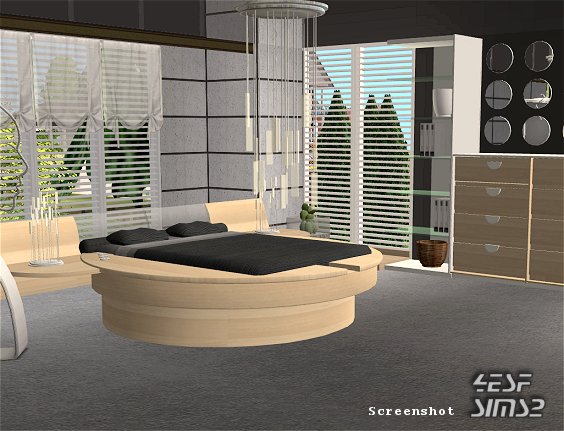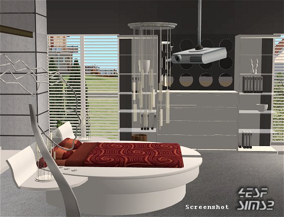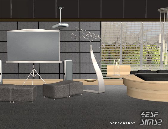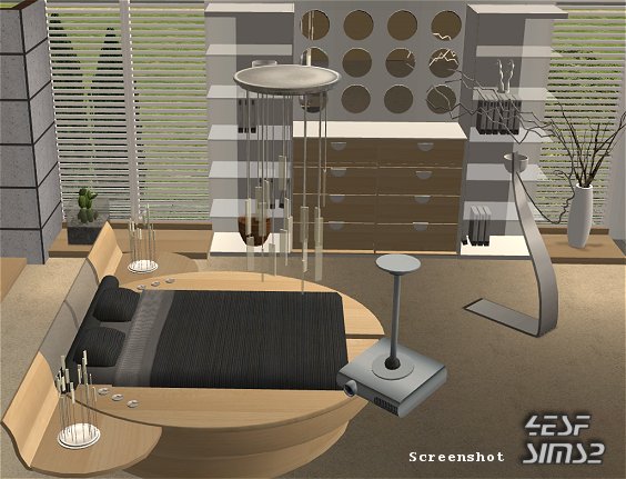 | The gift includes the following files: 47 files: 20 new meshes: Bed 3 endtables dresser 2 bookcases mirror 2 plants curtain homecinema TV beamer deco speaker deco sculpture table lamp ceiling lamp window deco bowl loveseat + 24 recolor files + 3 beddings I have all Expansion Packs installed, thus some of the items (except bed, sculpture, loveseat, tv, window, beamer, speaker and 1 plant) require these Expansion packs. All pictures below are screenshots taken in game: |