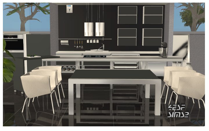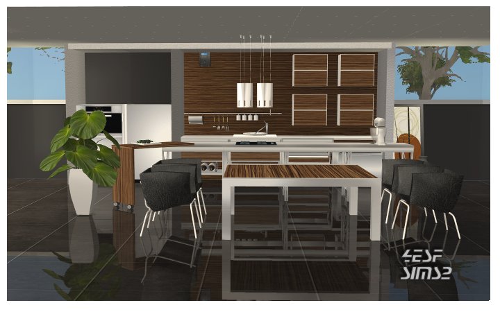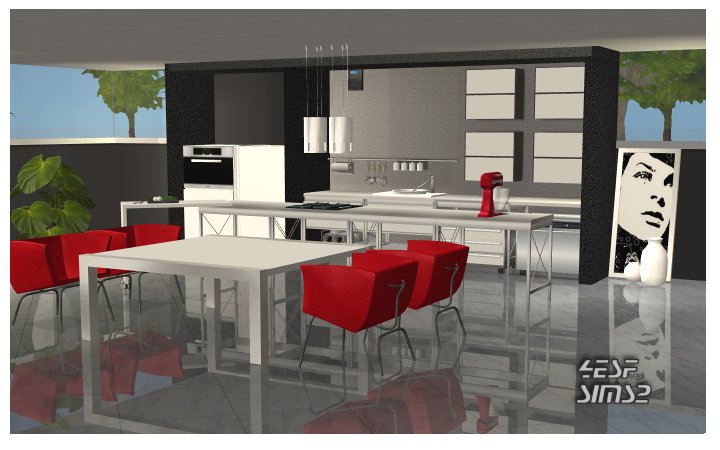 | The gift includes the following files: 63 files: 21 new meshes: fridge (Main game + season edition) 4 counters 1 overhead cabinet table chair sink trashcompactor stove foodprocessor smoke alarm dishwahser 2 deco items (wall accessories, plate) hightable deep ceilingtile cookerhood licuala palm painting + 40 recolor files + 2 walls All items are tested in game work fine. All pictures below are screenshots taken in game: |